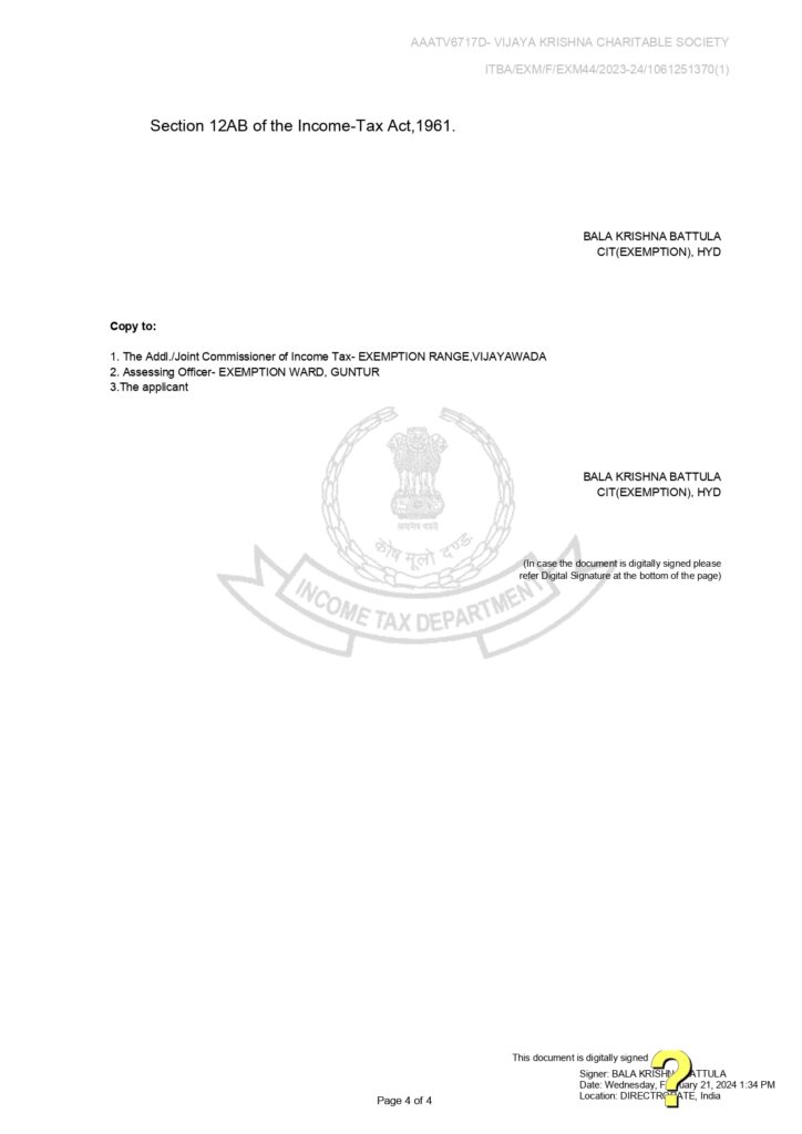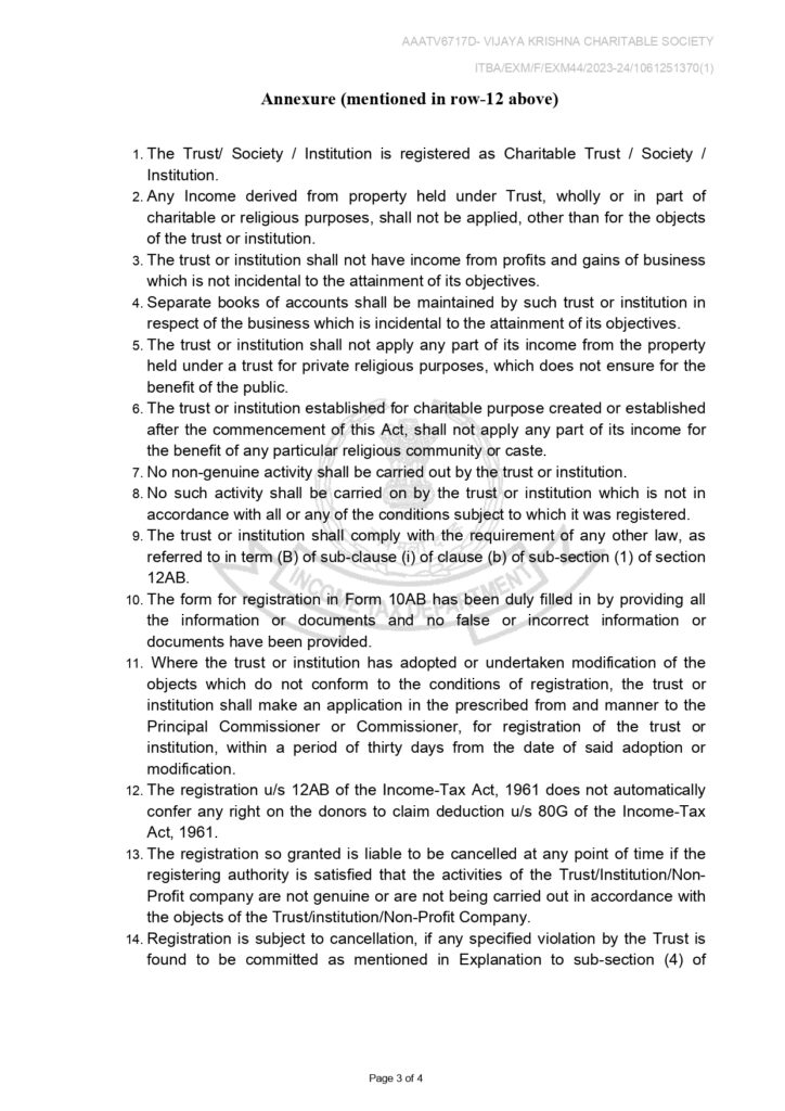 The Society is Vijaya Krishna Charitable Society irrevocable.